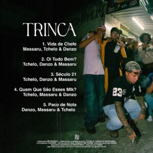Com um time desses, Trinca tem tudo para ser um marco no trap nacional. Sob a batuta de retroboy, um dos produtores mais influentes do gênero, o EP entrega beats imersivos e faixas que prometem dominar as ruas e as playlists. Dono de sucessos como “BARRAS & BARRAS”, “Menino Fatal” e “Kit Exclusivo”, o beatmaker mantém sua assinatura sonora enquanto eleva ainda mais o nível da produção no trap brasileiro.